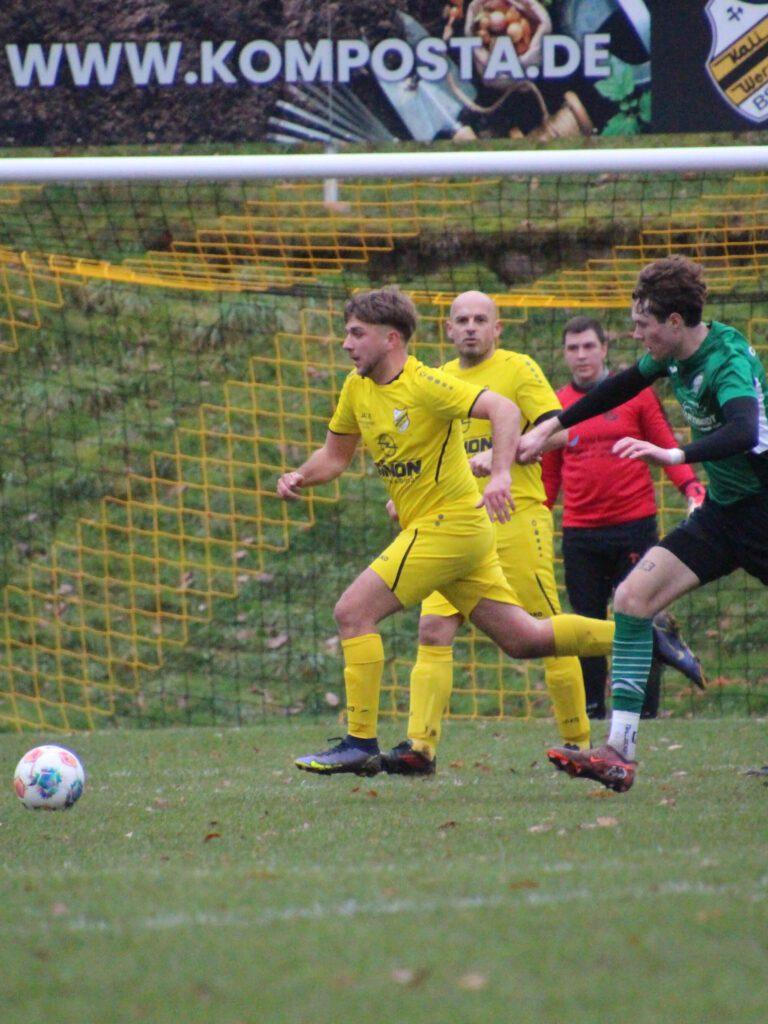Die Partie gegen Grün-Weiß hatte kaum begonnen und die Fans (jedenfalls die pünktlichen) hatten gerade ihre Plätze eingenommen, als es sie schon wieder von den Sitzen riss. Nach feiner Vorarbeit verwandelte Maurice Kropf gleich den ersten guten Angriff der Schwarz-Gelben souverän zur frühen Führung für Kali Werra. Und auch danach blieben unsere Jungs hochmotiviert auf dem Gaspedal. Mit guten Kombinationen und einem sehenswerten Aufbauspiel setzten sie Stockhausen unter Druck, und erneut Maurice Kropf vollendete schon nach 11 Minuten mustergültig zum 2:0. Das schmeckte den Gästen verständlicherweise nicht, zumal sie sich nach 25 Minuten mit einer unnötigen roten Karte selber schwächten.