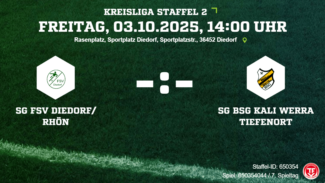 SG Diedorf/Rhön vs. BSG Kali Werra Tiefenort am Freitag, 03.10.2025, um 14:00 Uhr