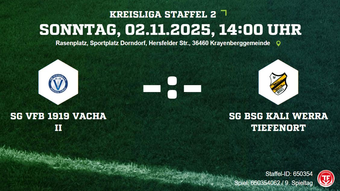 SG Vacha II vs. BSG Kali Werra Tiefenort am Sonntag, 02.11.2025, um 14:00 Uhr